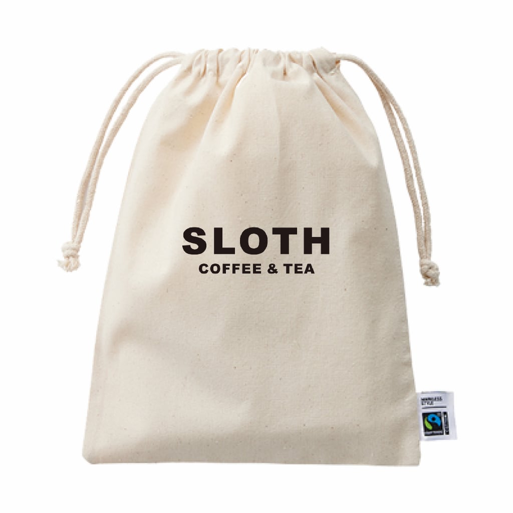 SLOTH COFFEE & TEAのロゴをデザインした巾着袋です。